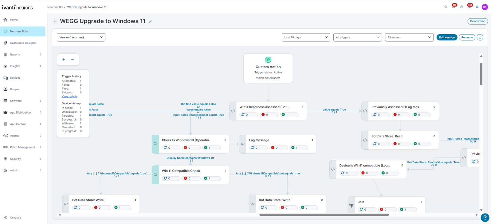 Con Ivanti Neurons, e in particolare con i bot preconfigurati come il “Windows 10 to Windows 11 Upgrade e Windows 11 Compatibility Checker”, il processo cambia radicalmente.