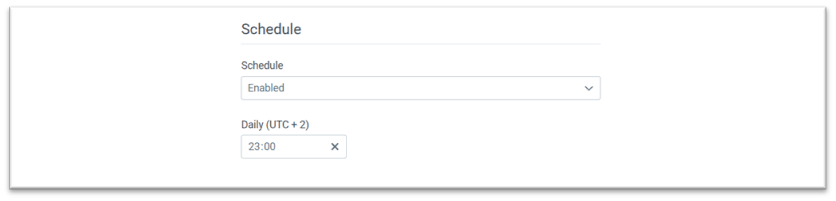 6. Alla voce Schedule di default il valore impostato è “Enable” alle 23.00