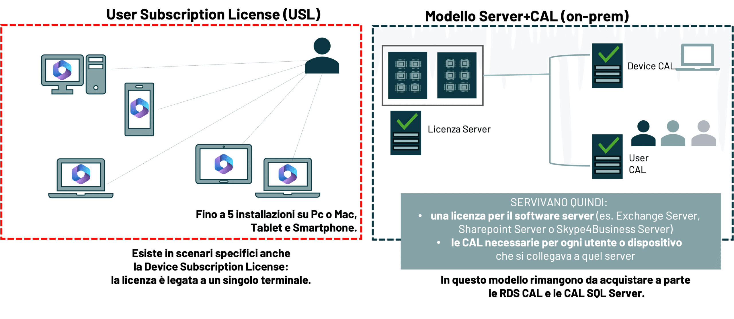 Un altro aspetto fondamentale per capire come funziona Microsoft 365 riguarda la tipologia di licenza. La scelta non influisce solo sui costi, ma anche sulla flessibilità e sulla modalità di utilizzo dei servizi.