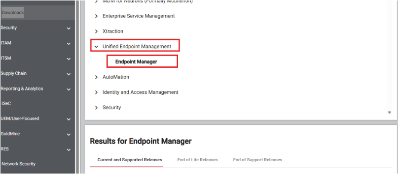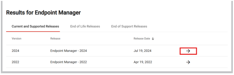 Nella scheda Current and Supported Releases, cliccare sulla freccia accanto alla release desiderata per espandere l’elenco dei file disponibili.